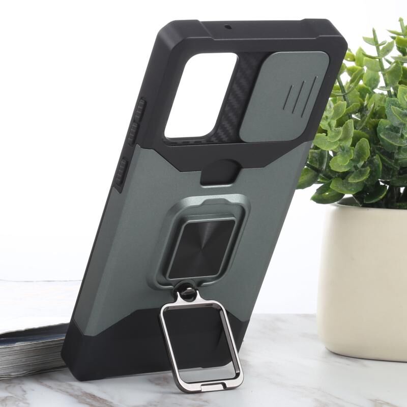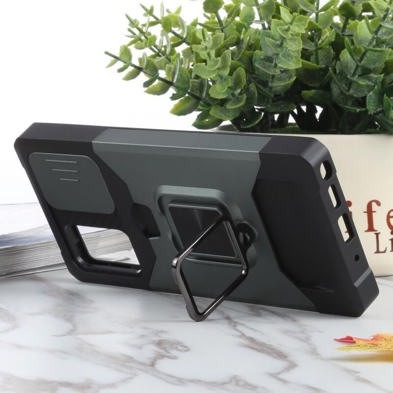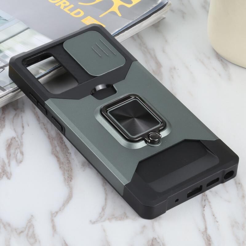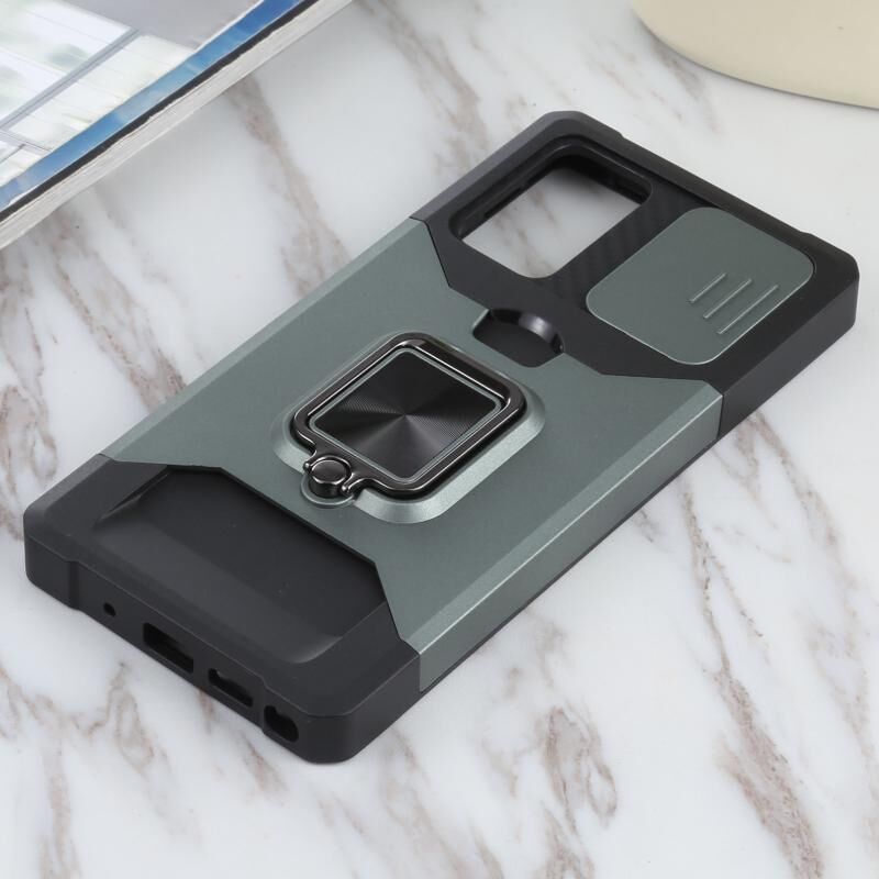 Για Samsung Galaxy Note20 συρόμενη κάμερα Cover Design PC + TPU Αδιάβροχη θήκη με θήκη δαχτυλίδι & υποδοχή κάρτας (σκούρο πράσινο)