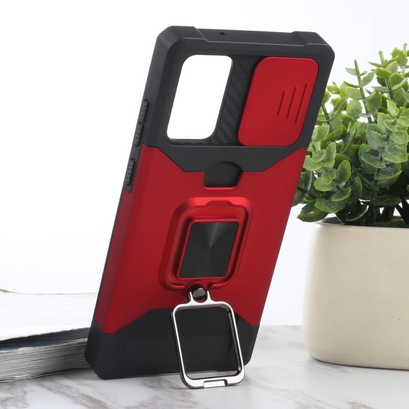 Για Samsung Galaxy Note20 συρόμενη κάμερα Cover Design PC + TPU Αδιάβροχη θήκη με θήκη δαχτυλίδι & υποδοχή κάρτας (κόκκινο)