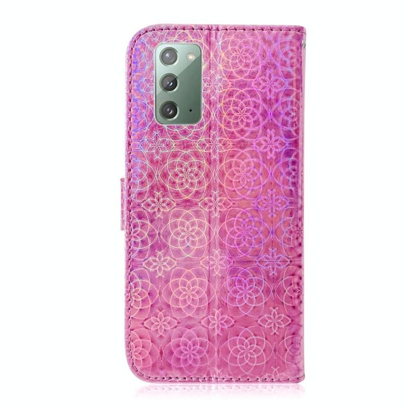 Για Samsung Galaxy Note20 Αμιγές χρώμα πολύχρωμο μαγνητικό πόρπη οριζόντια Flip PU δέρμα υπόθεση με θήκη & υποδοχές για κάρτες & πορτοφόλι & Lanyard (ροζ)