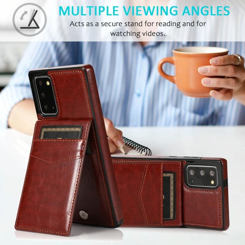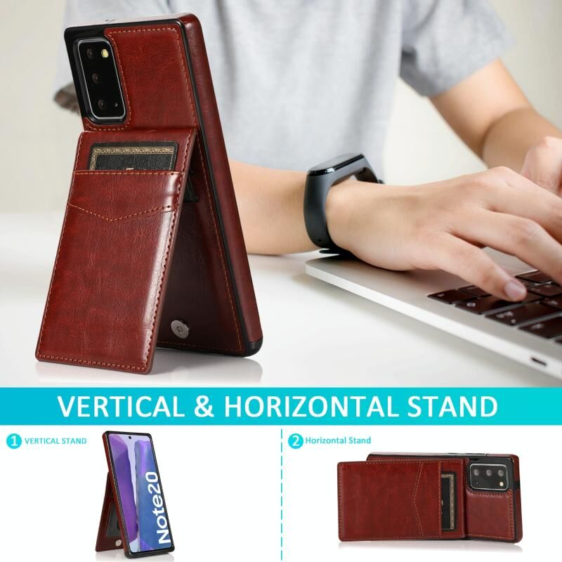 Για Samsung Galaxy Note20 Αμιγές χρώμα PC + TPU προστατευτική θήκη με θήκη & υποδοχές για κάρτες (καφέ)