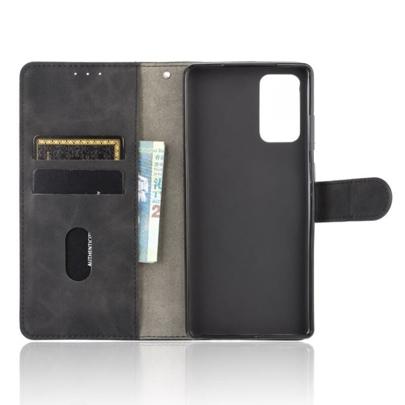 Για Samsung Galaxy Note20 Αμιγές χρώμα δέρμα αίσθηση μαγνητική πόρπη οριζόντια Flip μοσχάρι υφή PU δέρμα υπόθεση με κάτοχο & υποδοχές για κάρτες & πορτοφόλι (μαύρο)