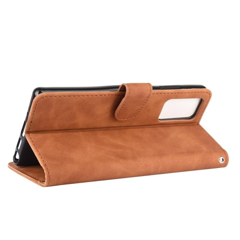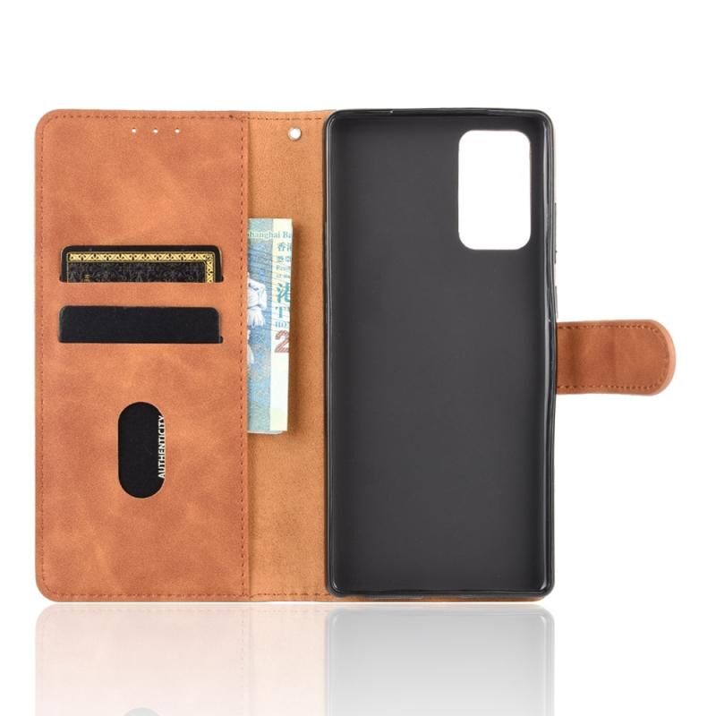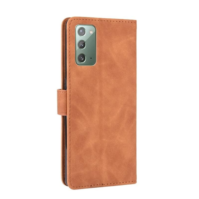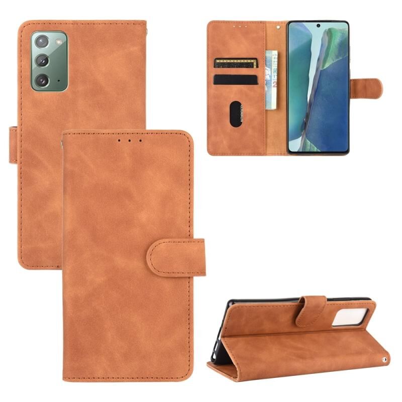 Για Samsung Galaxy Note20 Αμιγές χρώμα δέρμα αίσθηση μαγνητική πόρπη οριζόντια Flip μοσχάρι υφή PU δέρμα υπόθεση με κάτοχο & υποδοχές για κάρτες & πορτοφόλι (καφέ)