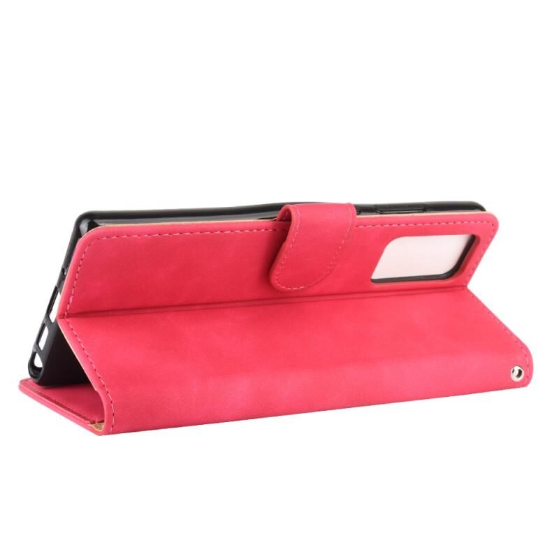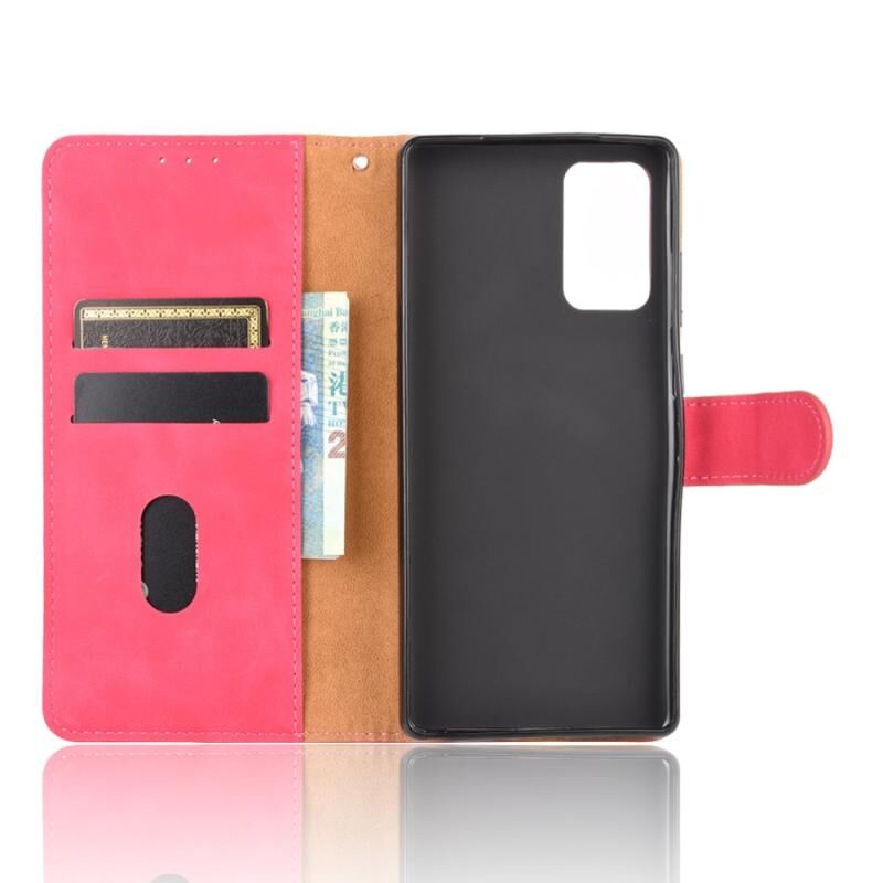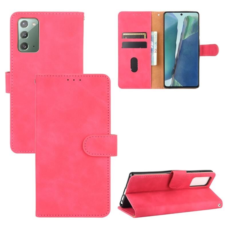 Για Samsung Galaxy Note20 Αμιγές χρώμα δέρμα αίσθηση μαγνητική πόρπη οριζόντια Flip μοσχάρι υφή PU δέρμα υπόθεση με κάτοχο & υποδοχές για κάρτες & πορτοφόλι (Rose Red)