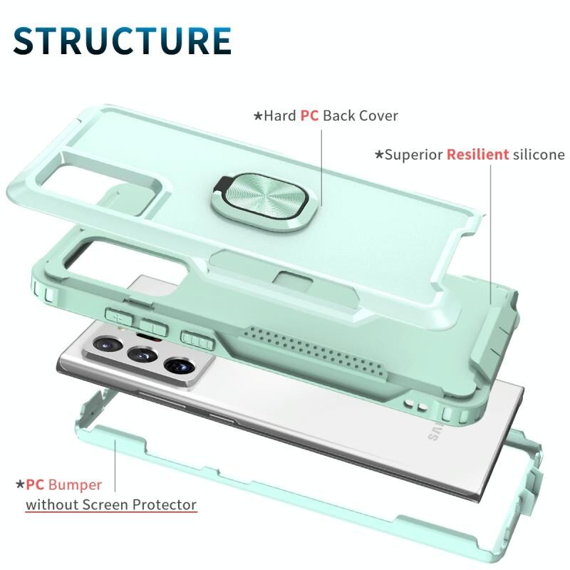 Για Samsung Galaxy Note20 Ultra 3 σε 1 PC + TPU υπόθεση τηλεφώνου με θήκη δαχτυλίδι (πράσινο χρώμα)