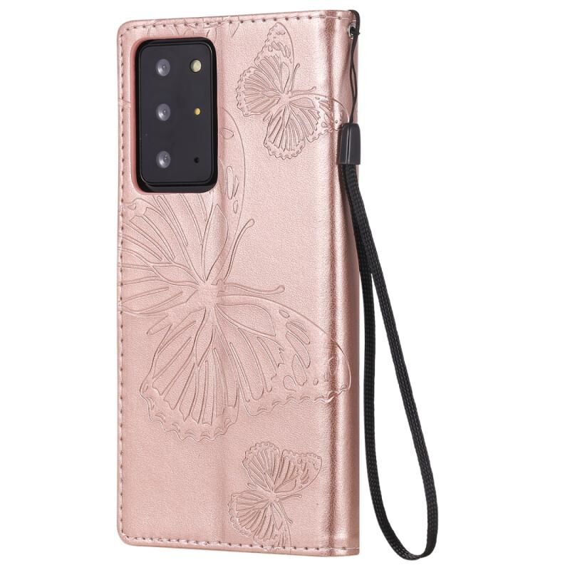 Θήκη δέρματος οριζόντιας αναδίπλωσης με ανάγλυφο σχέδιο 3D πεταλούδων για Samsung Galaxy Note20 Ultra, με βάση & υποδοχή κάρτας & πορτοφόλι (Πράσινο)