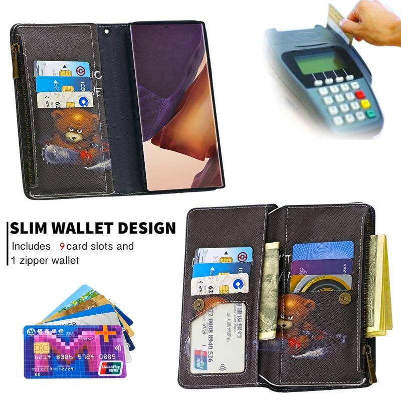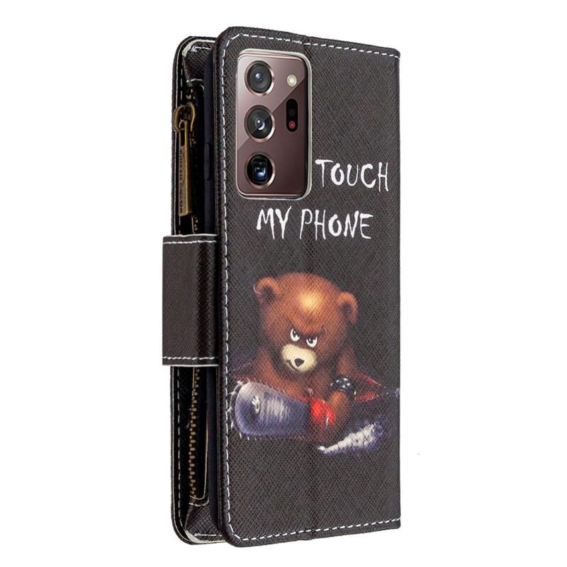 Θήκη δέρματος οριζόντιας αναδίπλωσης με φερμουάρ και σχέδιο πολύχρωμης ζωγραφικής για Samsung Galaxy Note20 Ultra 5G με βάση για κάρτες και πορτοφόλι (Αρκούδα)