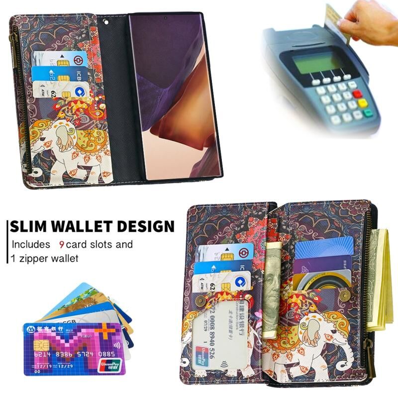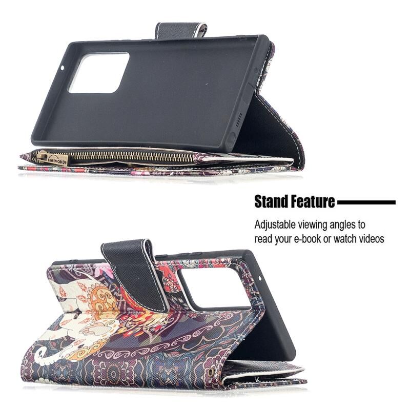 For Samsung Galaxy Note20 Ultra 5G Colored Drawing Pattern Zipper Horizontal Flip Leather Case with Holder & Card Slots & Wallet(Flower Elephants)