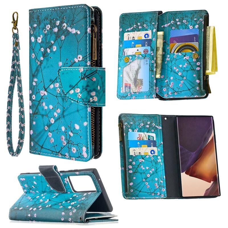 For Samsung Galaxy Note20 Ultra 5G Colored Drawing Pattern Zipper Horizontal Flip Leather Case with Holder & Card Slots & Wallet(Plum Blossom)