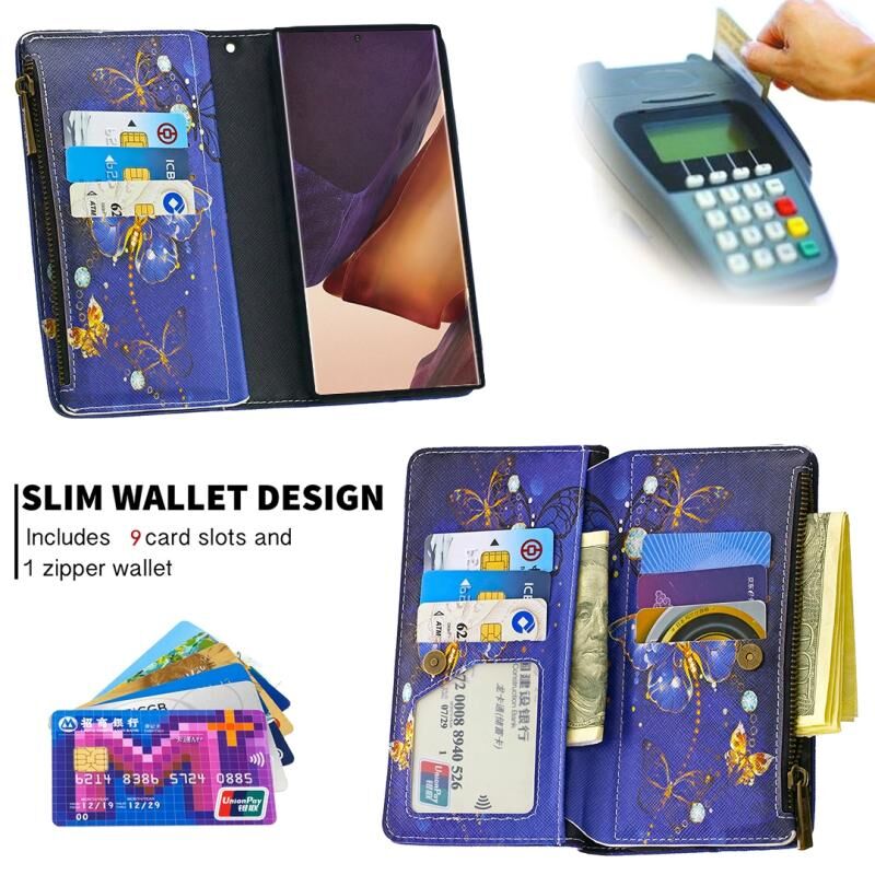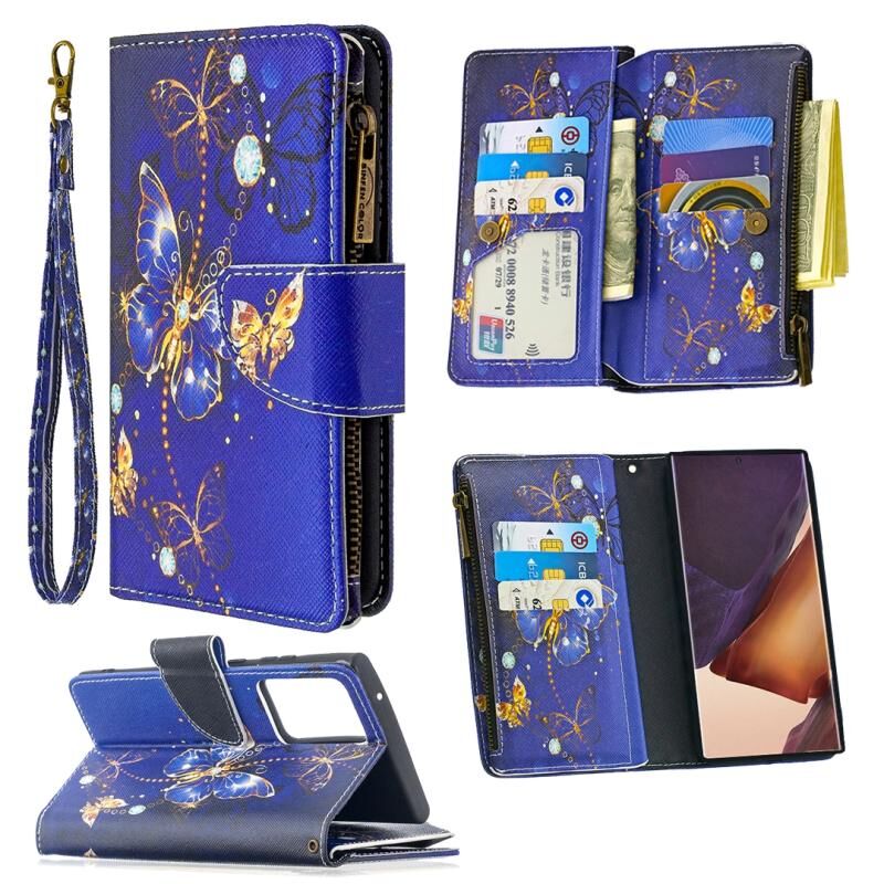 For Samsung Galaxy Note20 Ultra 5G Colored Drawing Pattern Zipper Horizontal Flip Leather Case with Holder & Card Slots & Wallet(Purple Butterfly)