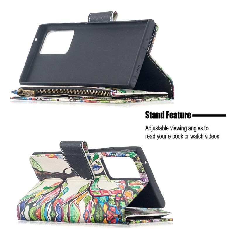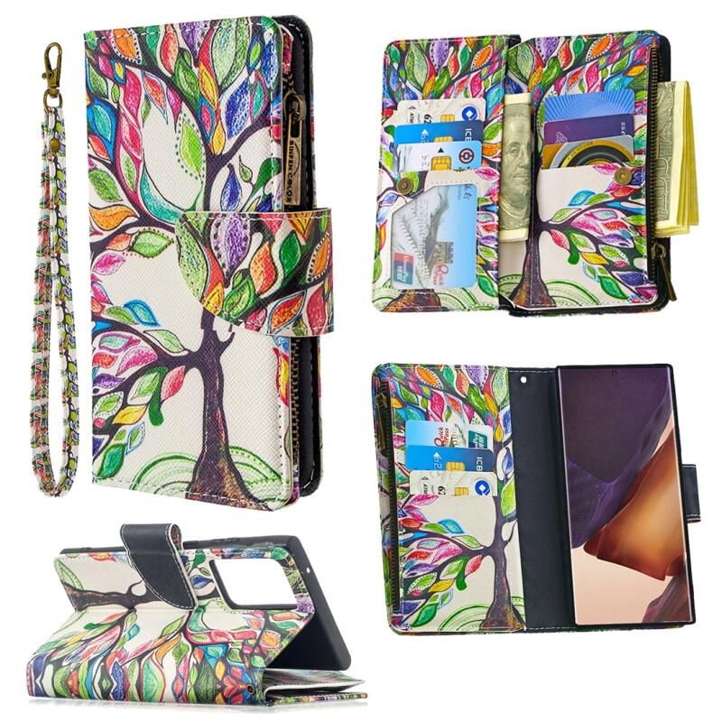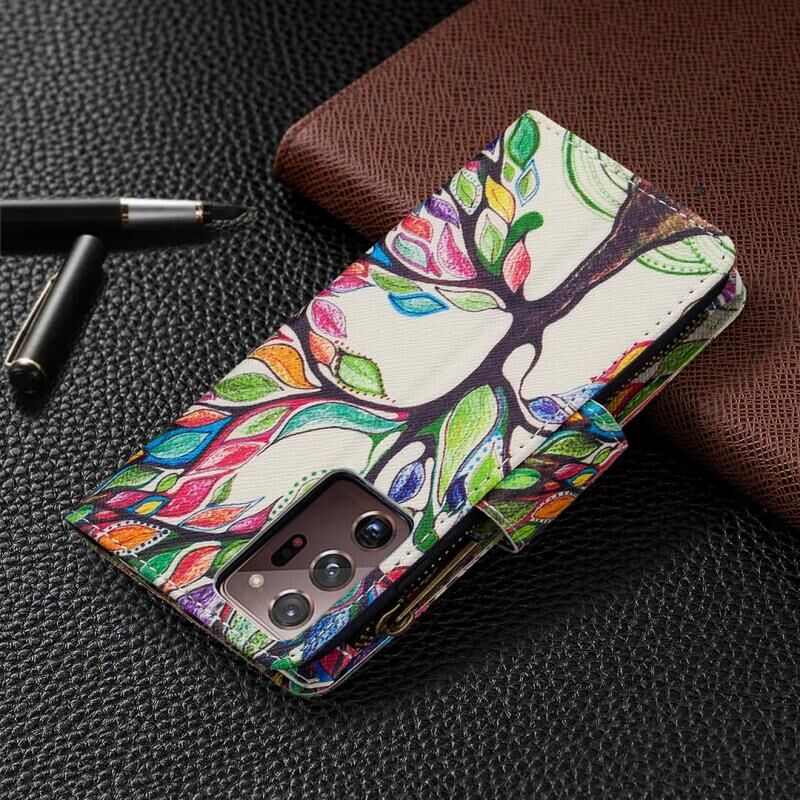 For Samsung Galaxy Note20 Ultra 5G Colored Drawing Pattern Zipper Horizontal Flip Leather Case with Holder & Card Slots & Wallet(Tree)