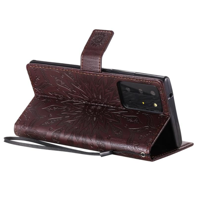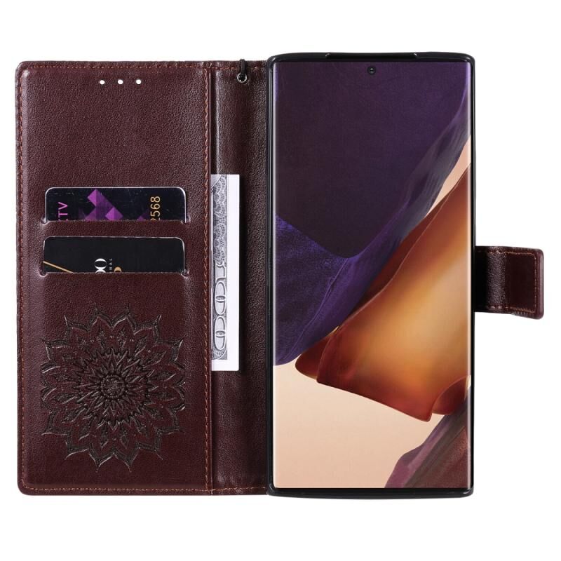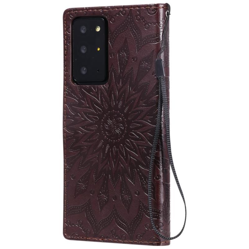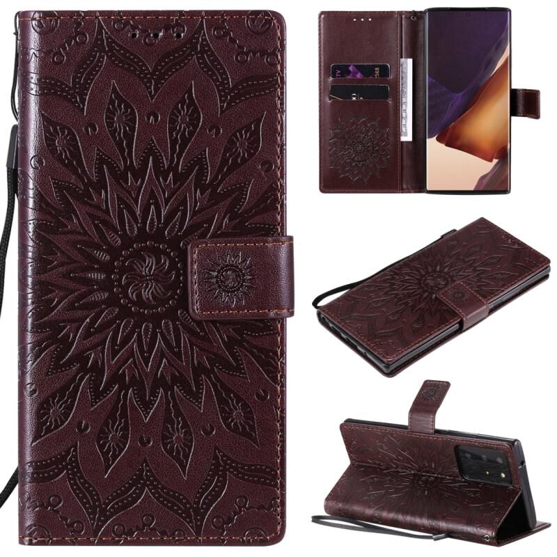 Για Samsung Galaxy Note20 Ultra 5G Sun ανάγλυφο μοτίβο οριζόντια Flip δερμάτινη θήκη με υποδοχή για κάρτες & κάτοχος & πορτοφόλι & κορδόνι (καφέ)