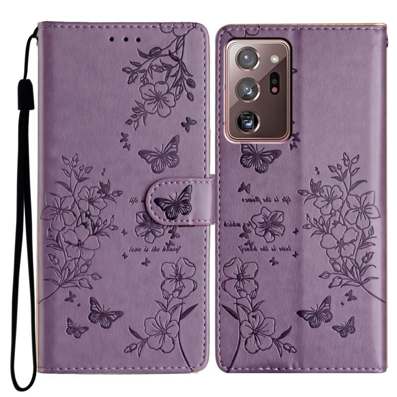 Θήκη τηλεφώνου Samsung Galaxy Note20 Ultra Butterflies and Flowers από δέρμα (Μαύρο)