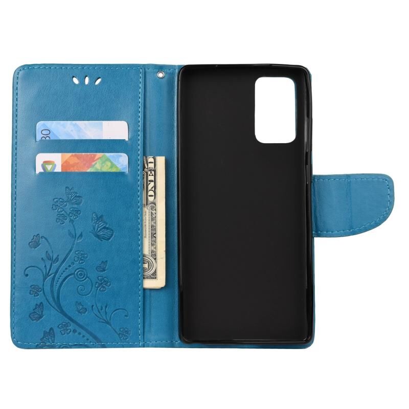 Για Samsung Galaxy Note20 Ultra πεταλούδα λουλούδι ανάγλυφο οριζόντια Flip δερμάτινη θήκη με θήκη & υποδοχές για κάρτες & πορτοφόλι (μπλε)