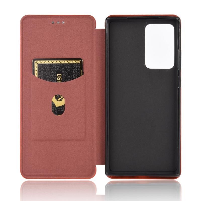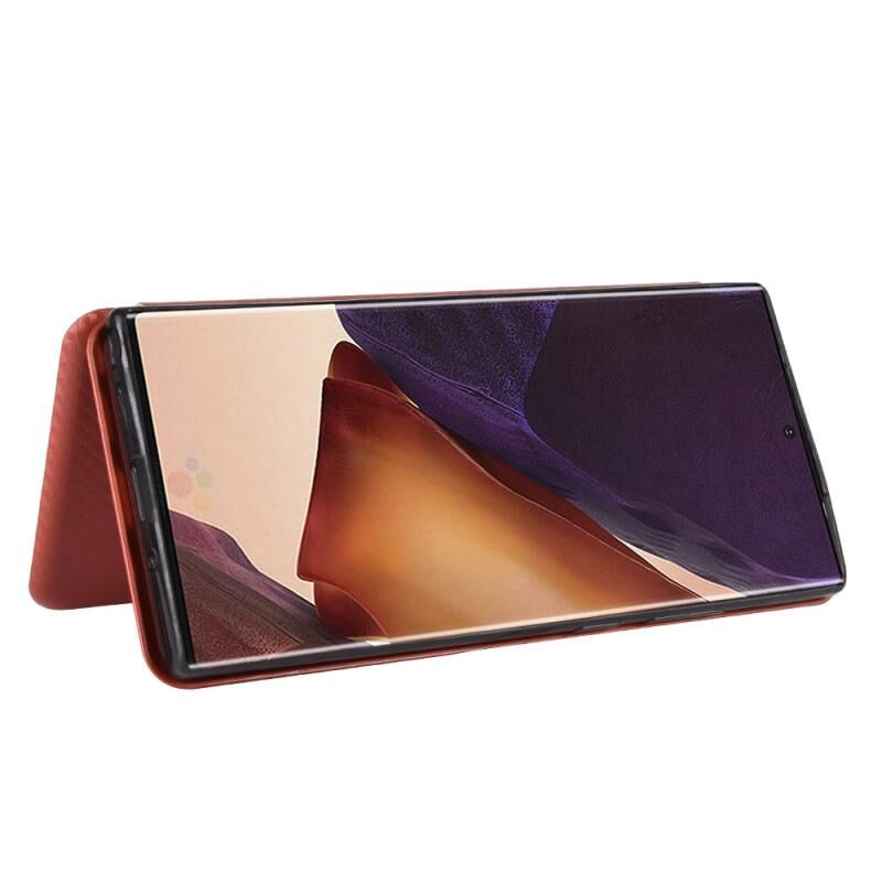 Για Samsung Galaxy Note20 Ultra Carbon Fiber υφή οριζόντια Flip TPU + PC + PU δέρμα υπόθεση με υποδοχή για κάρτες (καφέ)