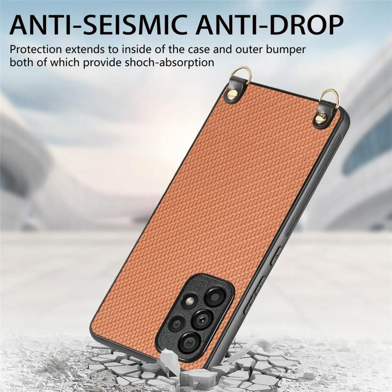 Για Samsung Galaxy Note20 Ultra Carbon Fiber Texture δέρμα πίσω κάλυμμα υπόθεση τηλεφώνου με λουράκι σταυρού (καφέ)