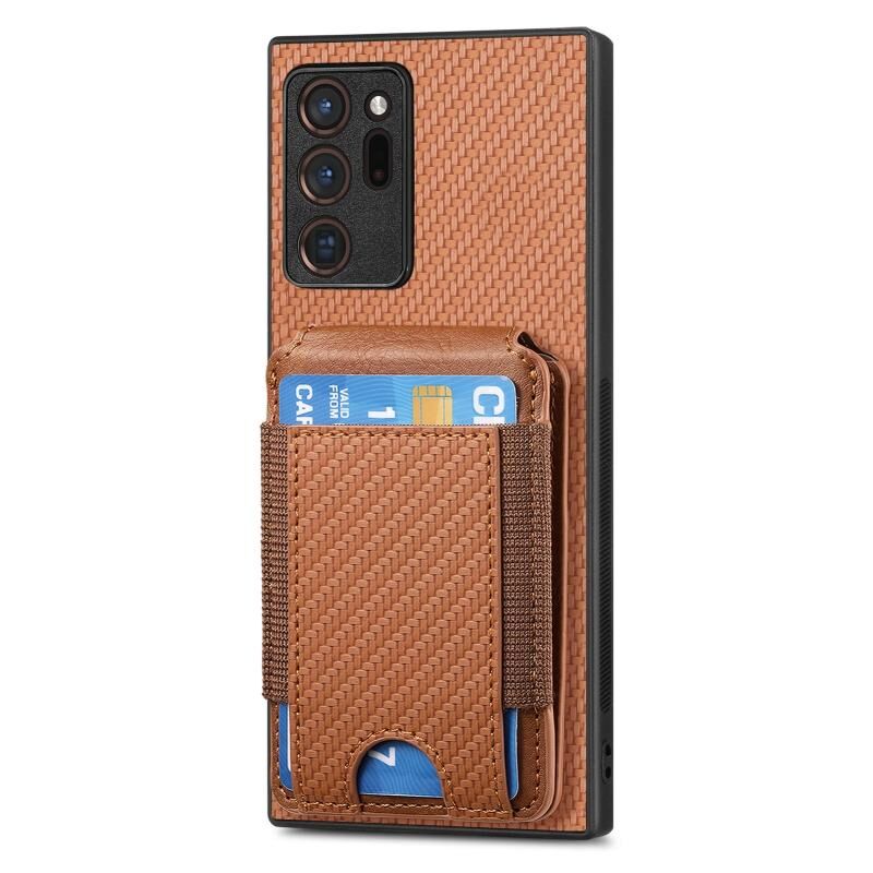 For Samsung Galaxy Note20 Ultra Carbon Fiber Vertical Flip Wallet Stand Phone Case(Brown)