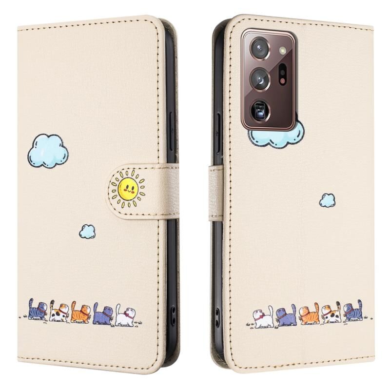 Θήκη τηλεφώνου Samsung Galaxy Note20 Ultra από δέρμα με σχέδια χαριτωμένων γατών (Κόκκινο)