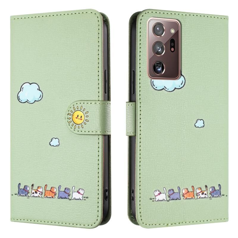 Θήκη τηλεφώνου Samsung Galaxy Note20 Ultra από δέρμα με σχέδια χαριτωμένων γατών (Κόκκινο)