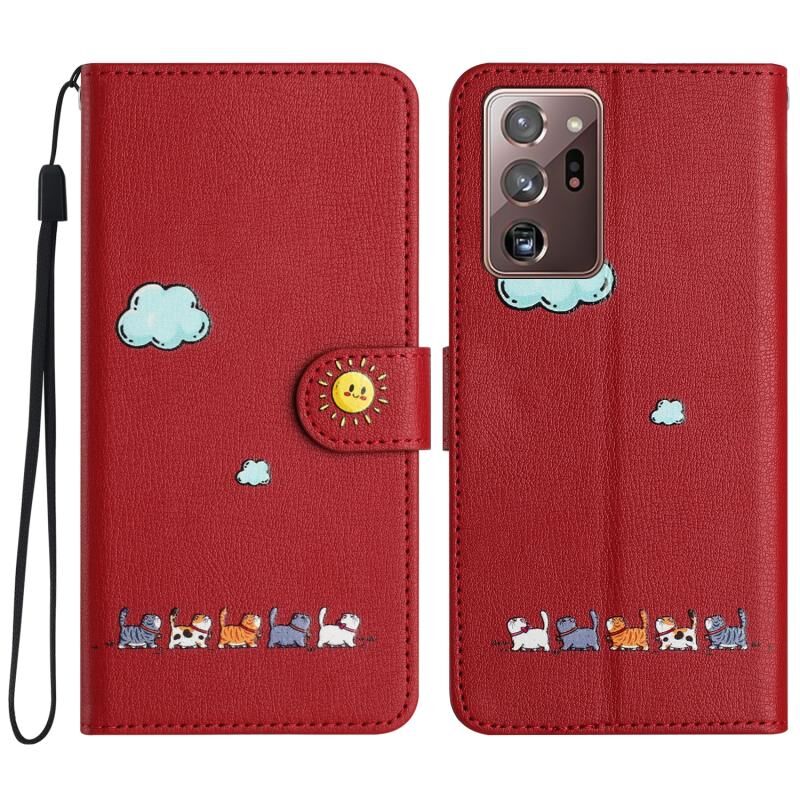 Θήκη τηλεφώνου Samsung Galaxy Note20 Ultra από δέρμα με σχέδια χαριτωμένων γατών (Κόκκινο)