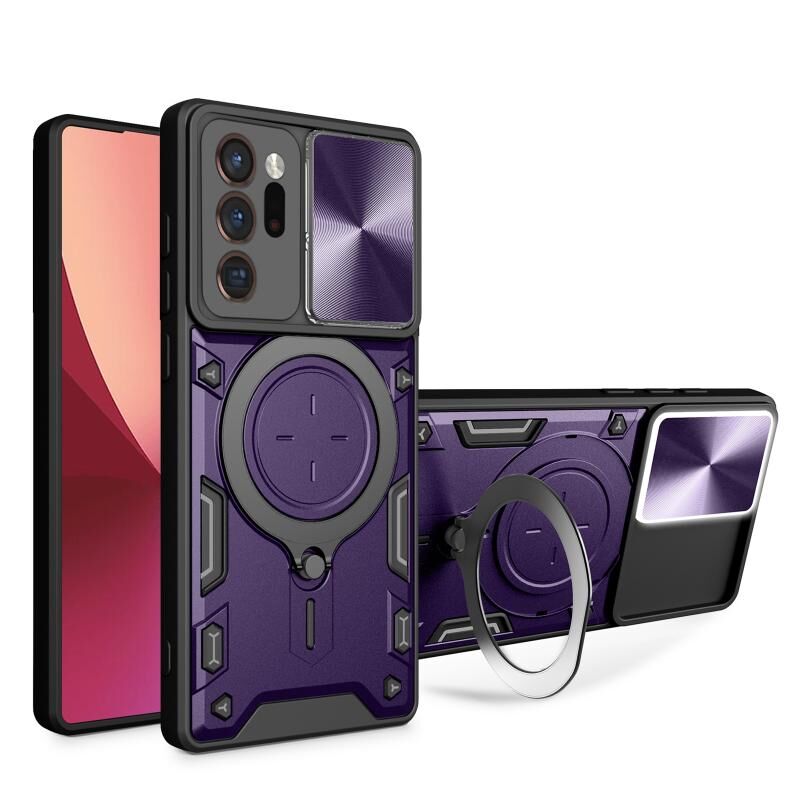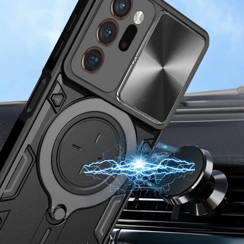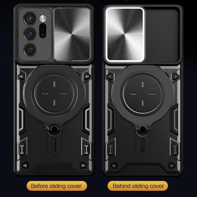 Θήκη κινητού τηλεφώνου με μαγνητική βάση και ολισθαίνουσα προστασία κάμερας, με υφή CD για Samsung Galaxy Note20 Ultra (Ροζ)