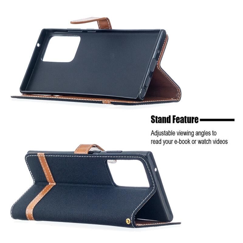 Για Samsung Galaxy Note20 Ultra χρώμα ταιριάζει με τζιν υφή οριζόντια Flip δερμάτινη θήκη με θήκη & υποδοχές για κάρτες & πορτοφόλι & κορδόνι (Μαύρο)