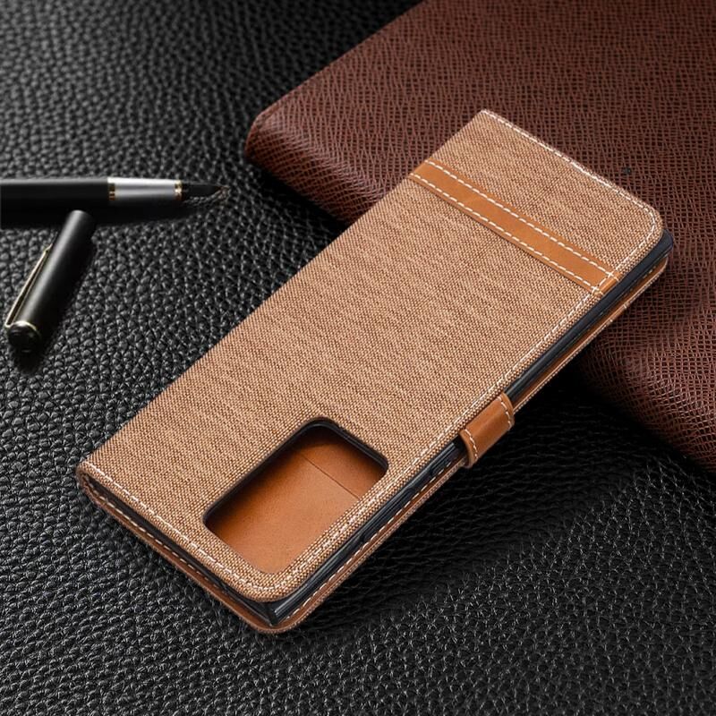 Για Samsung Galaxy Note20 Ultra χρώμα ταιριάζει με τζιν υφή οριζόντια Flip δερμάτινη θήκη με θήκη & υποδοχές για κάρτες & πορτοφόλι & κορδόνι (καφέ)