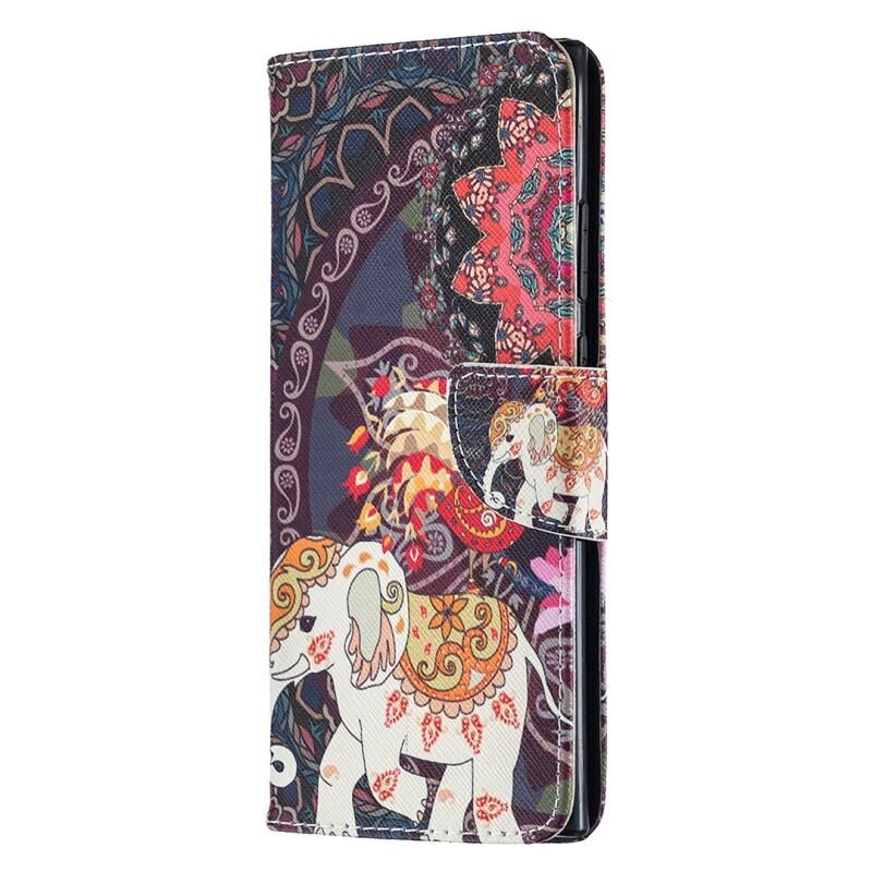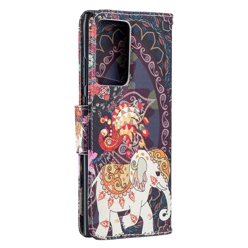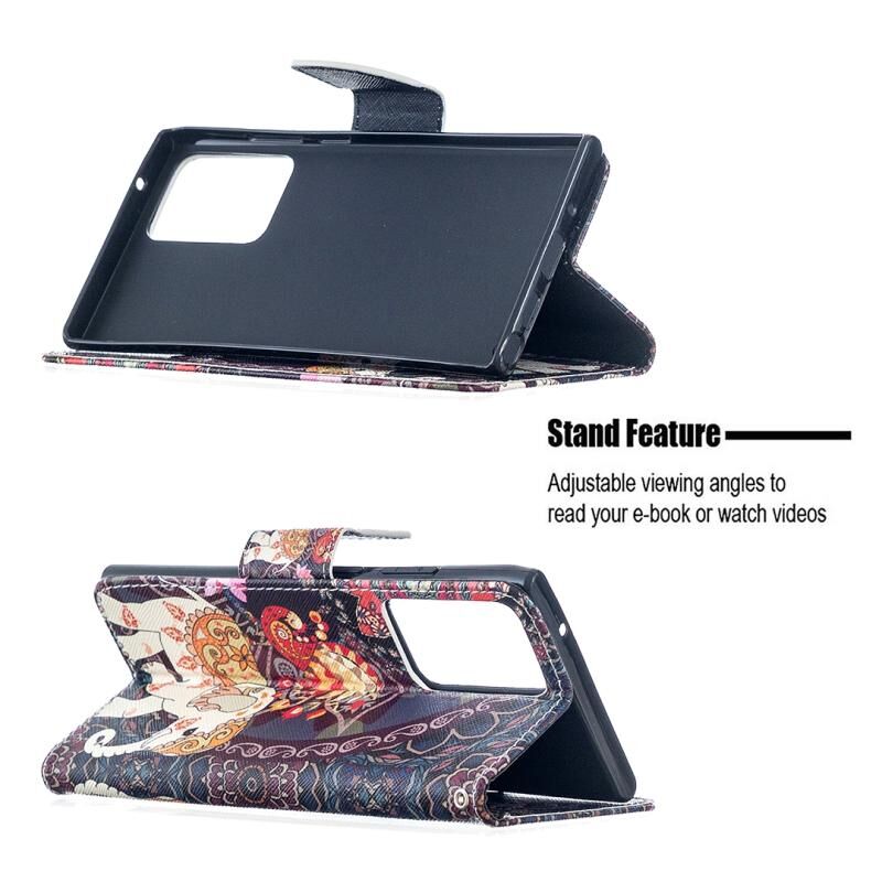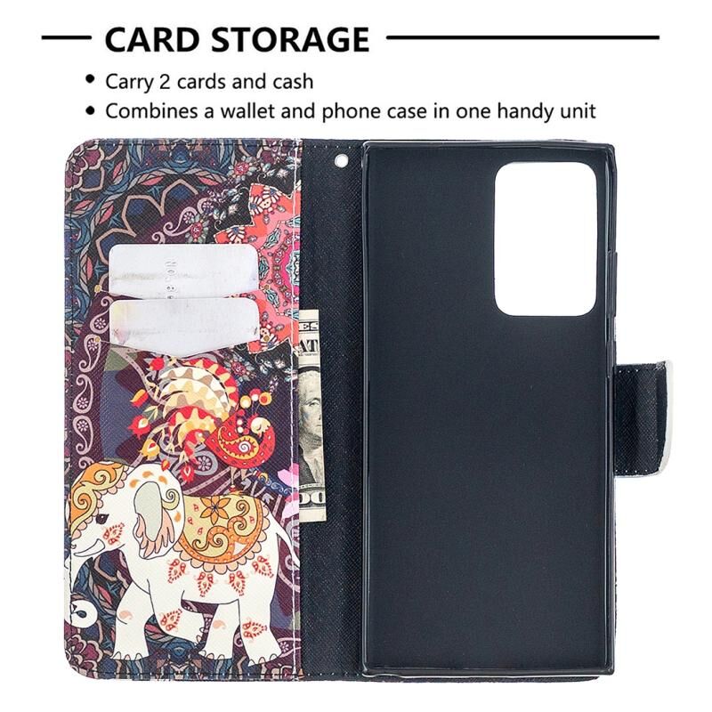 Θήκη δέρματος οριζόντιας αναδίπλωσης με σχέδιο πολύχρωμης ζωγραφικής για Samsung Galaxy Note20 Ultra με βάση & υποδοχές καρτών & πορτοφόλι (Λουλούδια και Ελέφαντας)