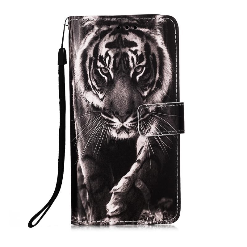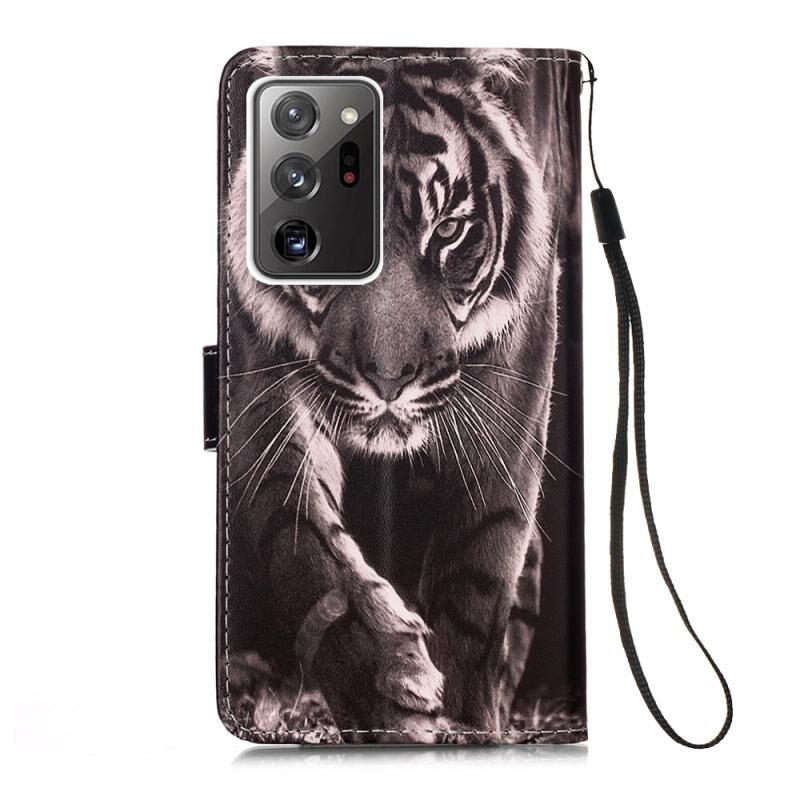 Θήκη δέρματος οριζόντιας αναδίπλωσης για Samsung Galaxy Note20 Ultra με σχέδιο πολύχρωμης ζωγραφικής, απλή ύφανση, με βάση & θήκη καρτών & πορτοφόλι & κορδόνι (Τίγρης σε Μαύρο και Λευκό)