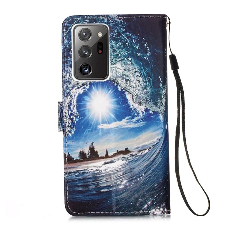 Θήκη δέρματος οριζόντιας αναδίπλωσης για Samsung Galaxy Note20 Ultra με σχέδιο πολύχρωμης ζωγραφικής, απλή ύφανση, με βάση & θήκη καρτών & πορτοφόλι & κορδόνι (Κύματα και Ήλιος)
