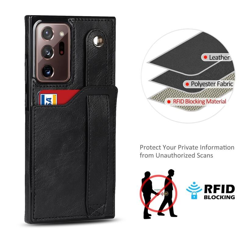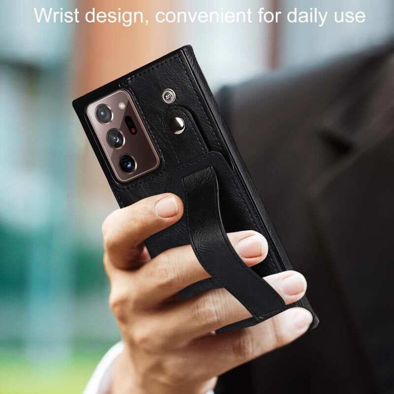 Για το Samsung Galaxy Note20 Ultra Crazy Horse Υφή Shockproof TPU + PU δέρμα υπόθεση με υποδοχή για κάρτες & στήριγμα λουράκι καρπού (Μαύρο)