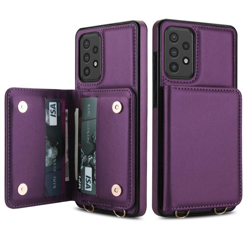 For Samsung Galaxy Note20 Ultra Crossbody Dual-buckle Wallet RFID Back Leather Phone Case(Dark Purple)
