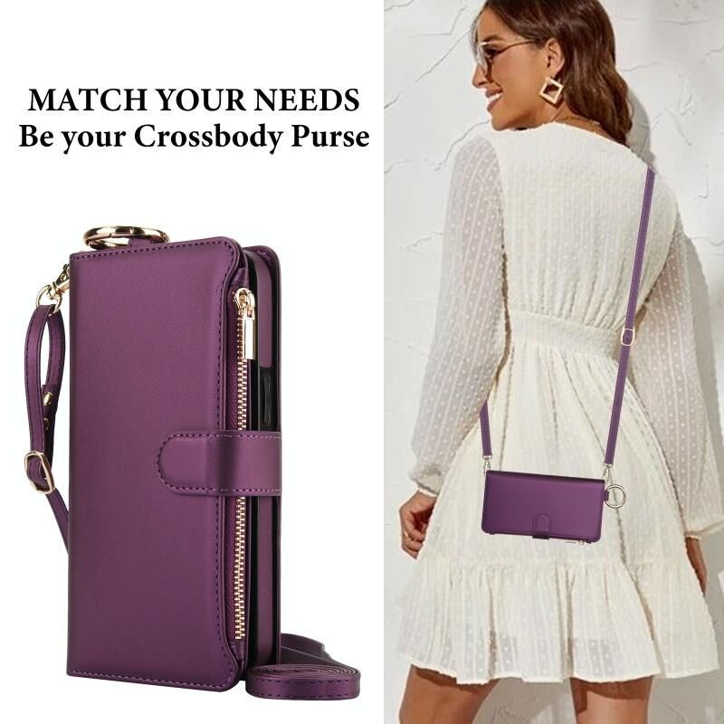 Για Samsung Galaxy Note20 Ultra Crossbody Ring Πολυλειτουργική θήκη τηλεφώνου δερμάτινο πορτοφόλι (σκούρο μωβ)
