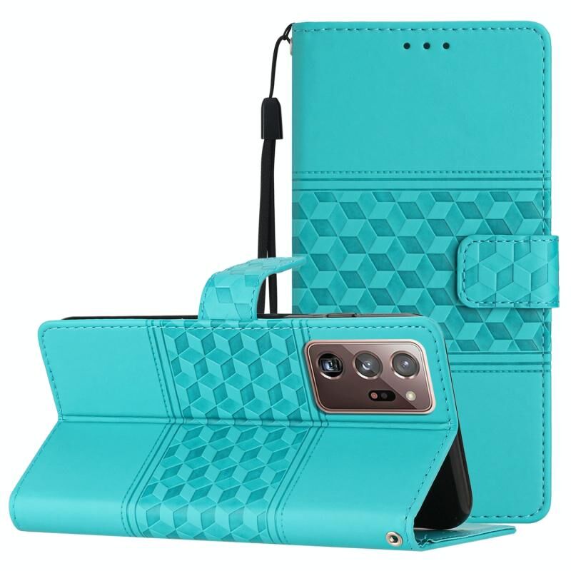Για Samsung Galaxy Note20 Ultra Diamond ανάγλυφο δέρμα αίσθηση δέρμα τηλέφωνο υπόθεση με κορδόνι (μπλε)