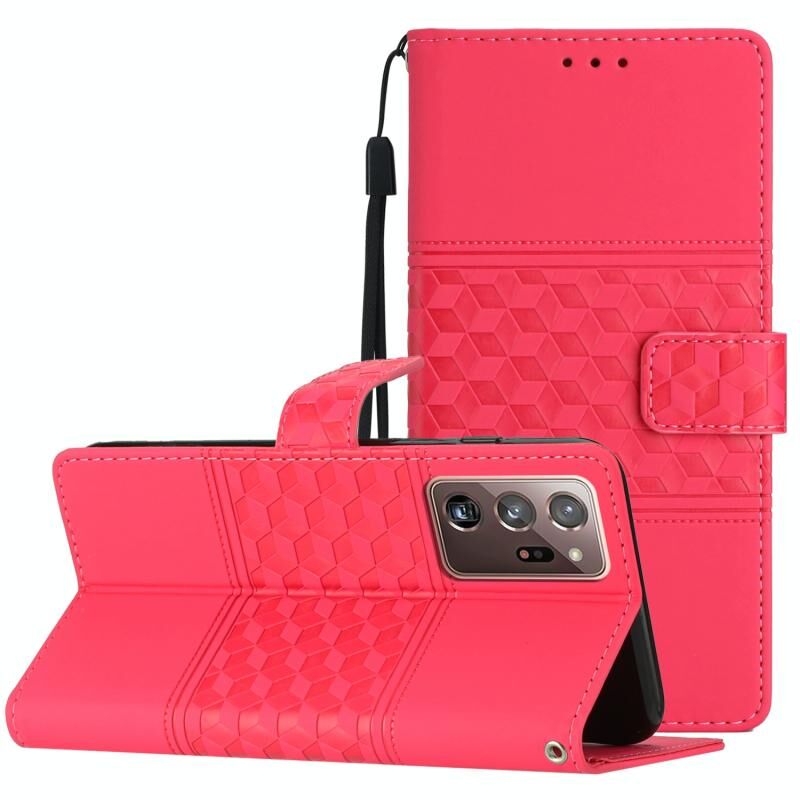 Για Samsung Galaxy Note20 Ultra Diamond ανάγλυφο δέρμα αίσθηση δέρμα τηλέφωνο υπόθεση με κορδόνι (κόκκινο)