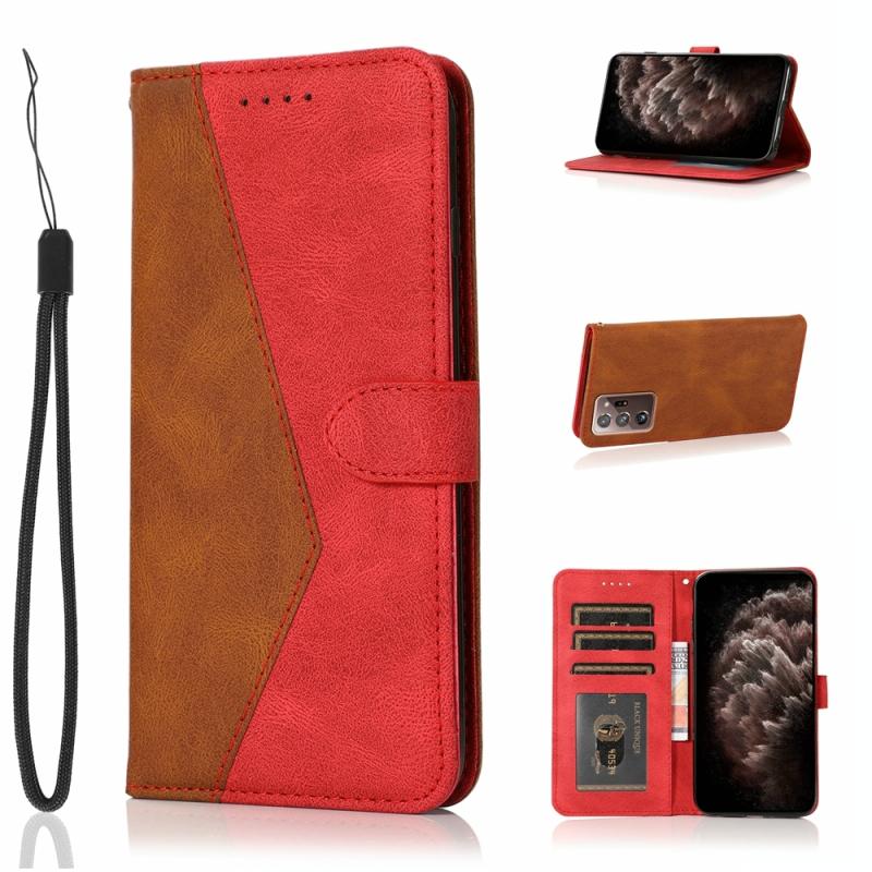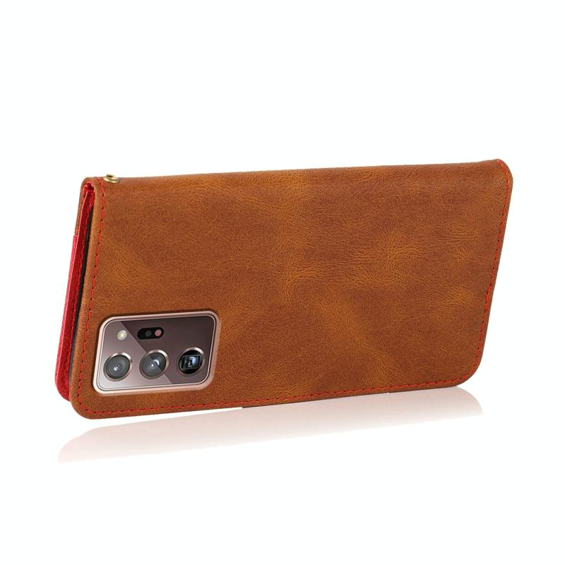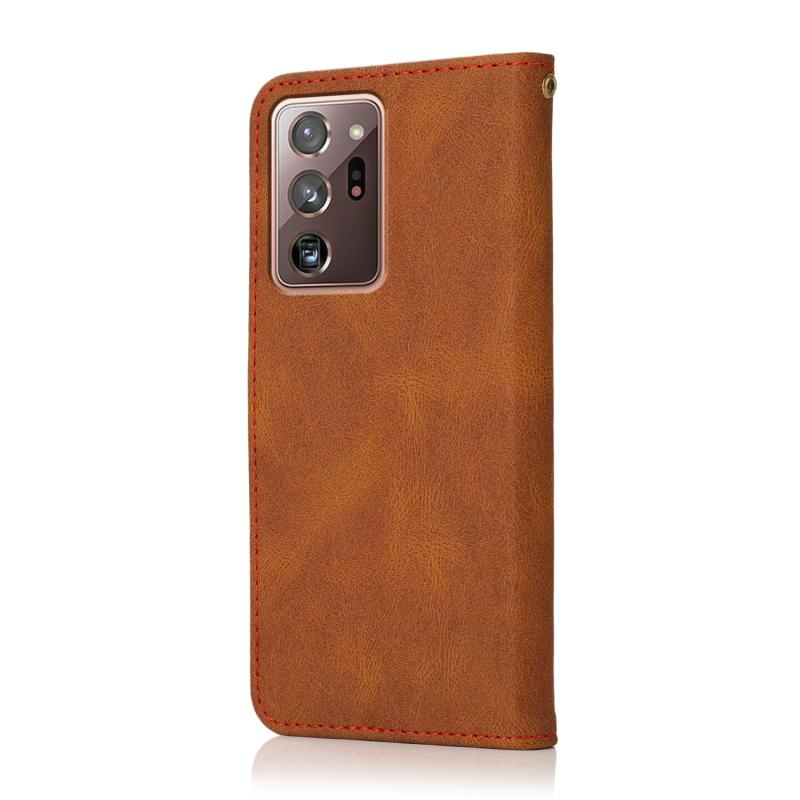 Θήκη τηλεφώνου από δέρμα με διπλή ραφή για Samsung Galaxy Note20 Ultra (Καφέ-κόκκινο)