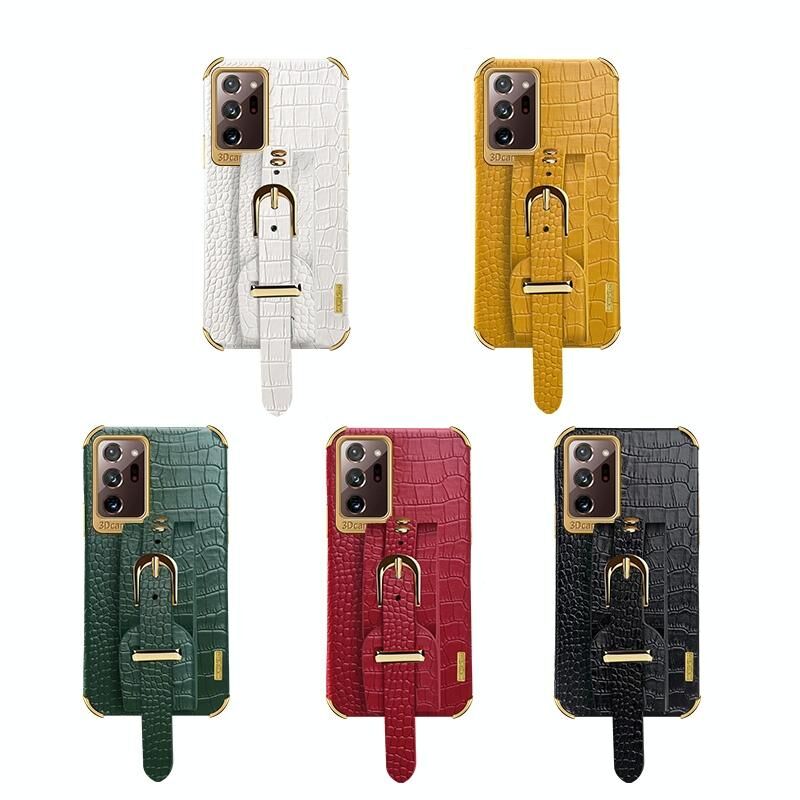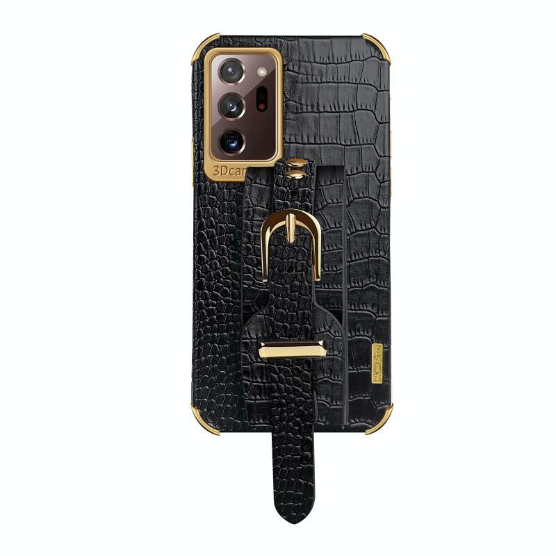 Για Samsung Galaxy Note20 Ultra Electroplated TPU Crocodile Pattern Leather Case με λουράκι καρπού (Μαύρο)