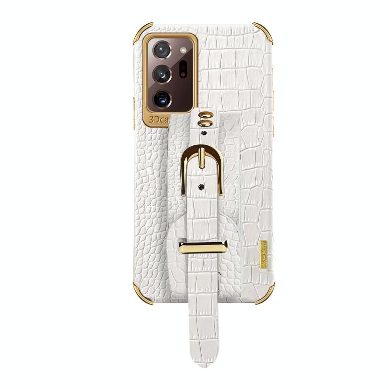 Για Samsung Galaxy Note20 Ultra Electroplated TPU Crocodile Pattern Leather Case με λουράκι καρπού (λευκό)