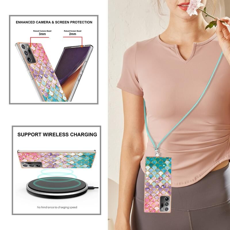 Θήκη τηλεφώνου Samsung Galaxy Note20 Ultra με ηλεκτρολυτική επιμετάλλωση IMD TPU με κορδόνι (Πολύχρωμες Λέπια)