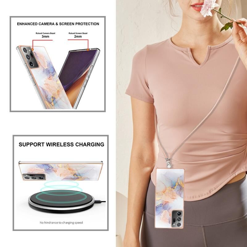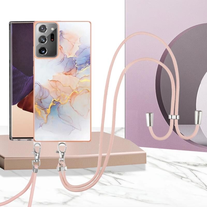 Θήκη κινητού τηλεφώνου Samsung Galaxy Note20 Ultra με ηλεκτρολυτική επιμετάλλωση IMD TPU με κορδόνι (Ροζ Λέπια)