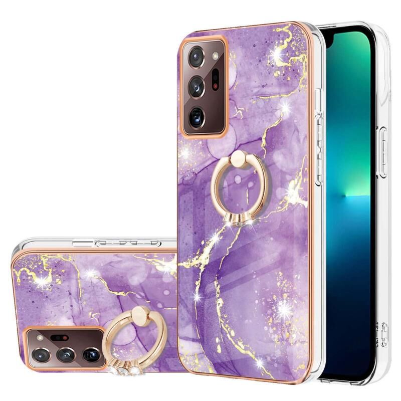 Θήκη κινητού τηλεφώνου Samsung Galaxy Note20 Ultra με Ηλεκτρολυτική Επικάλυψη, σχέδιο Μάρμαρου IMD, από TPU με Δαχτυλίδι Στήριξης (Μωβ 001)