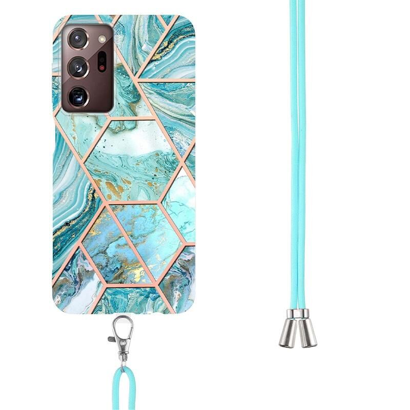 Θήκη κινητού τηλεφώνου Samsung Galaxy Note20 Ultra με ηλεκτρολυτική επιμετάλλωση, μαρμάρινη σύνθεση TPU με κορδόνι (Σκούρο Μωβ)