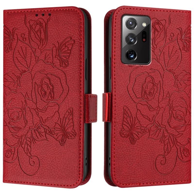 For Samsung Galaxy Note20 Ultra Embossed Rose RFID Anti-theft Leather Phone Case(Red)