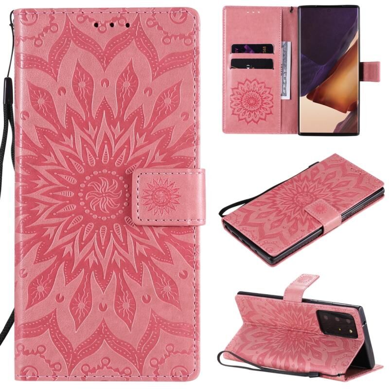 Θήκη Samsung Galaxy Note20 Ultra με ανάγλυφο σχέδιο ηλίανθου, οριζόντια, από δερματίνη PU με βάση στήριξης, θήκες για κάρτες, πορτοφόλι & λουρί (Πράσινο)