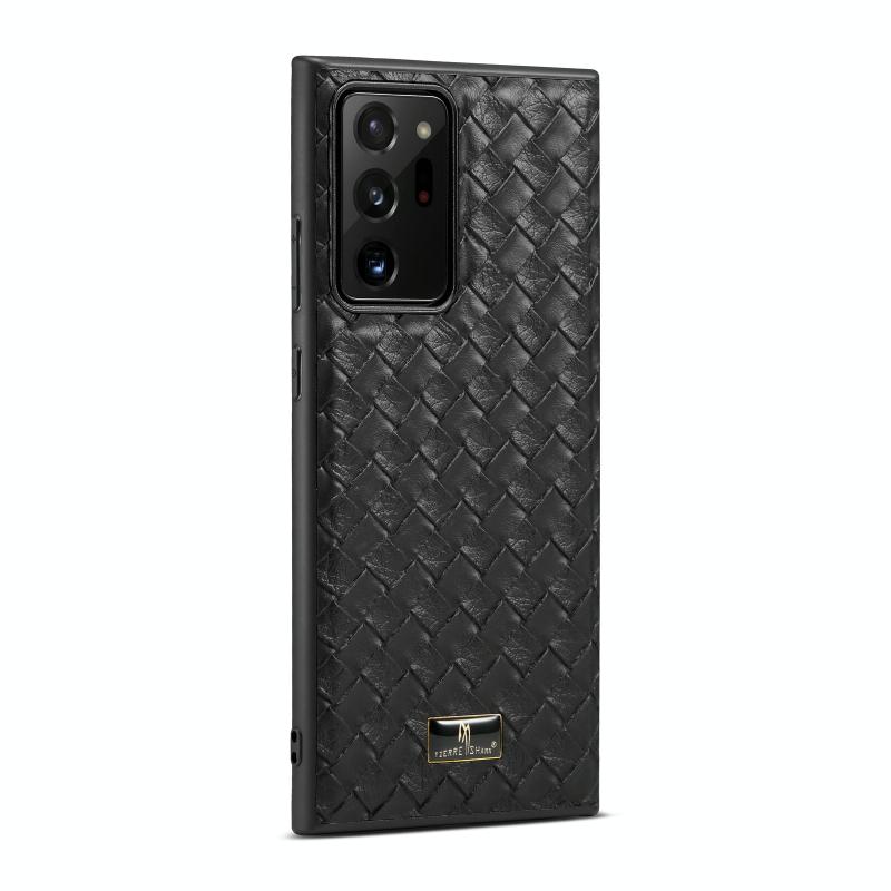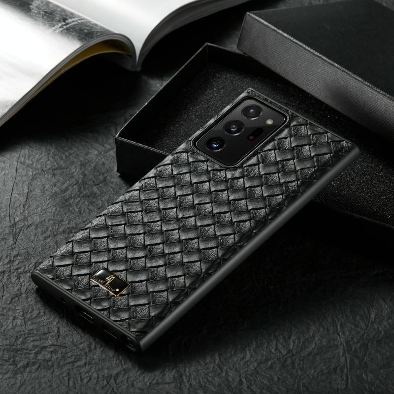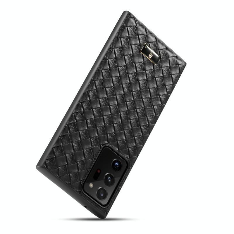 For Samsung Galaxy Note20 Ultra Fierre Shann Leather Texture Phone Back Cover Case(Woven Black) (FIERRE SHANN)