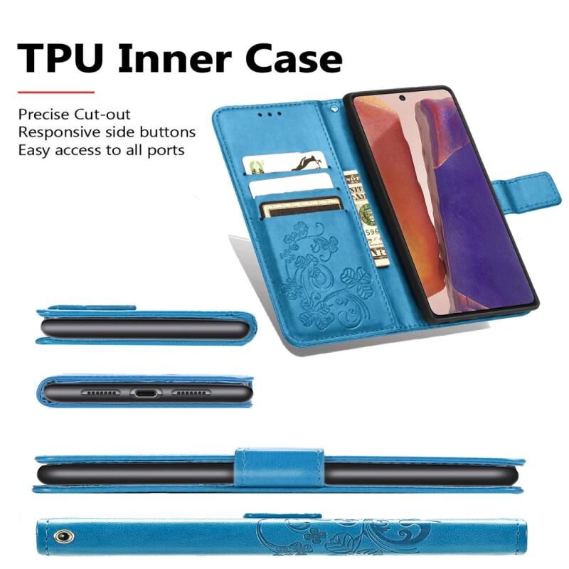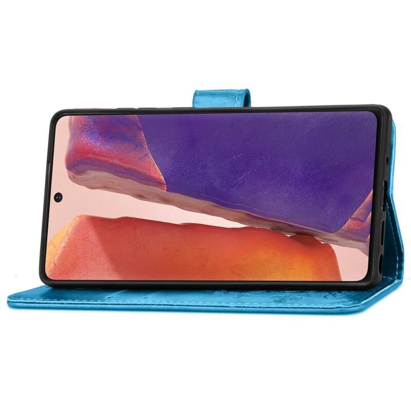 Θήκη δερμάτινη προστασίας κινητού τηλεφώνου για Samsung Galaxy Note20 Ultra με κουμπωτή αγκράφα τριφυλλιού, θήκη με κορδόνι, υποδοχή κάρτας, λειτουργία πορτοφολιού & βάσης (Μωβ)