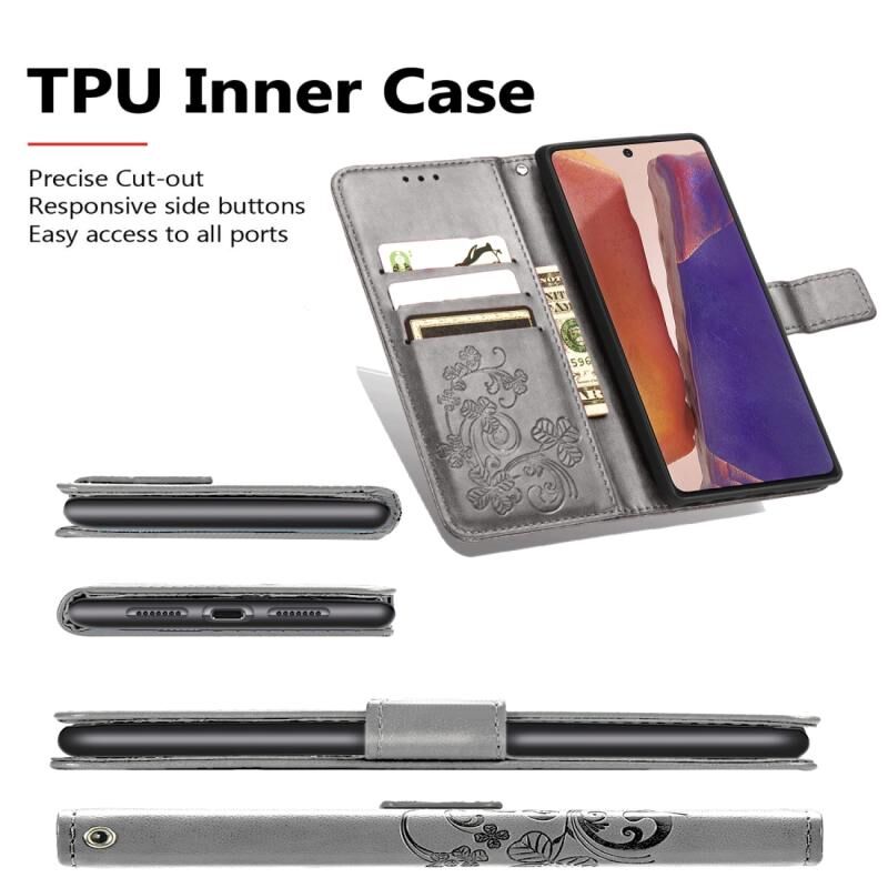 Θήκη δερμάτινη προστασίας κινητού τηλεφώνου για Samsung Galaxy Note20 Ultra με κουμπωτή αγκράφα τριφυλλιού, θήκη με κορδόνι, υποδοχή κάρτας, λειτουργία πορτοφολιού & βάσης (Μωβ)