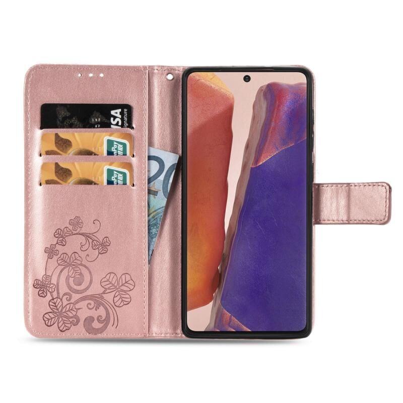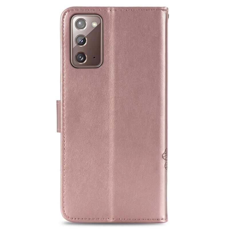 Θήκη δερμάτινη προστασίας κινητού τηλεφώνου για Samsung Galaxy Note20 Ultra με κουμπωτή αγκράφα τριφυλλιού, θήκη με κορδόνι, υποδοχή κάρτας, λειτουργία πορτοφολιού & βάσης (Μωβ)