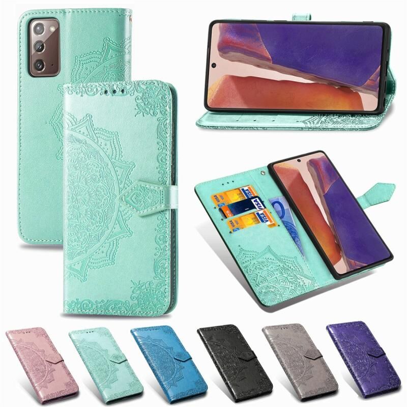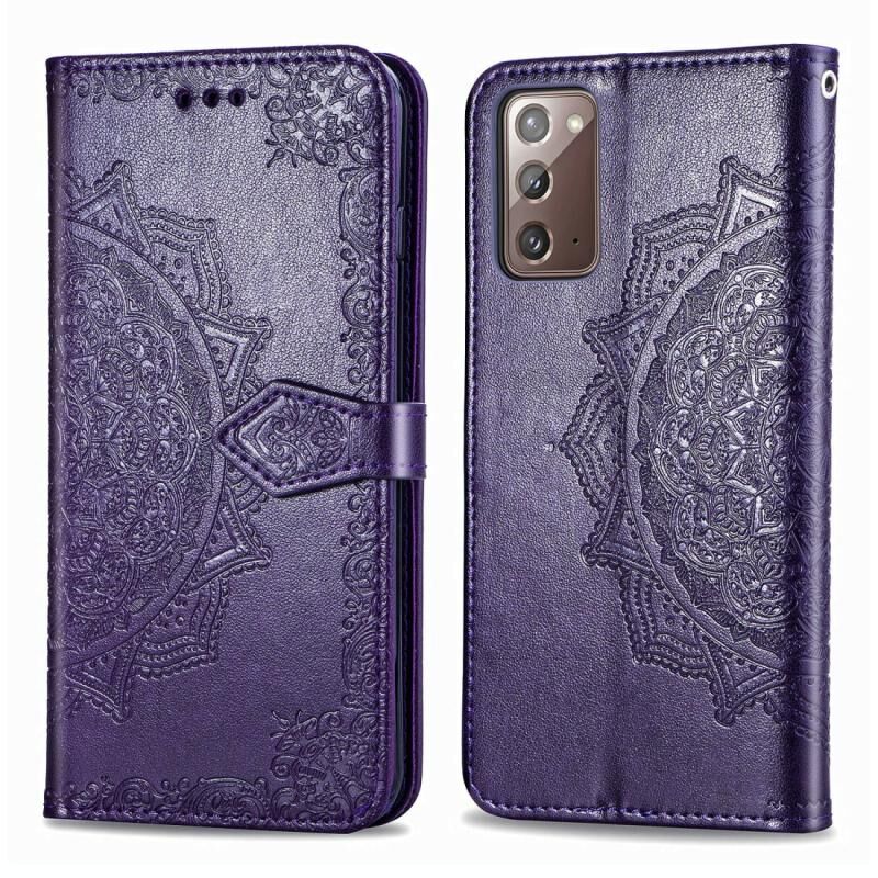 Για Samsung Galaxy Note20 Ultra Halfway Mandala ανάγλυφο μοτίβο οριζόντια Flip δερμάτινη θήκη με θήκη & υποδοχές για κάρτες & πορτοφόλι & κορδόνι (μωβ)