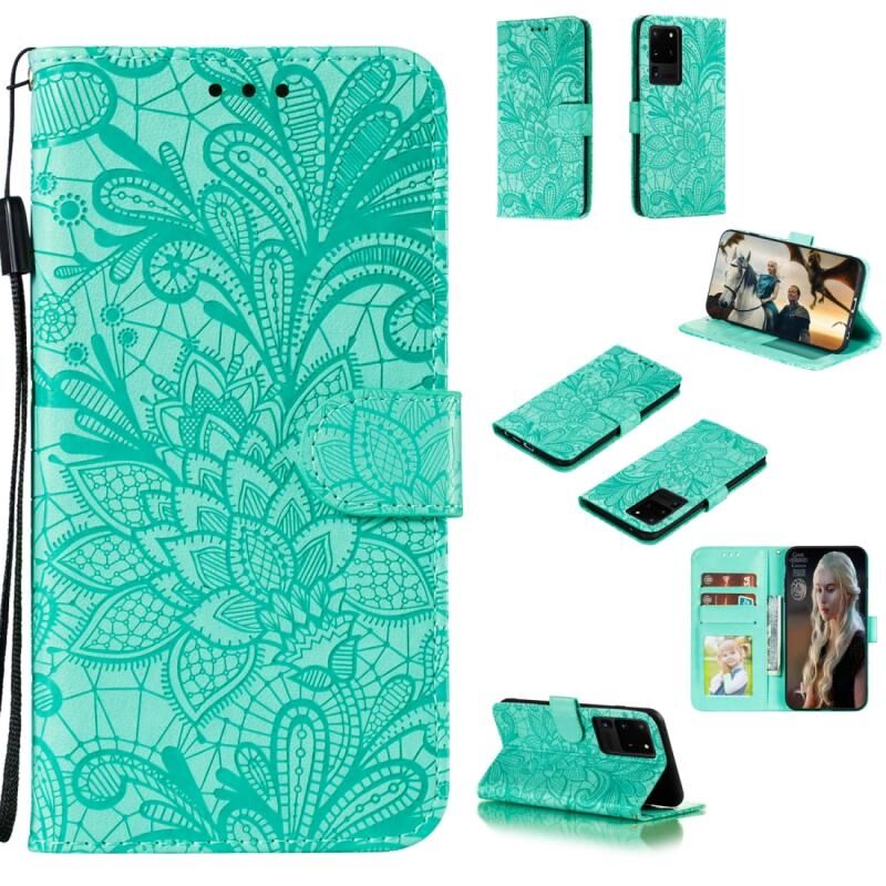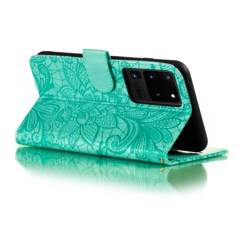 Θήκη Samsung Galaxy Note20 Ultra με δαντελένιο λουλούδι, οριζόντια, από δέρμα με βάση στήριξης & θήκες για κάρτες & πορτοφόλι & κορνίζα φωτογραφιών (Γκρι)
