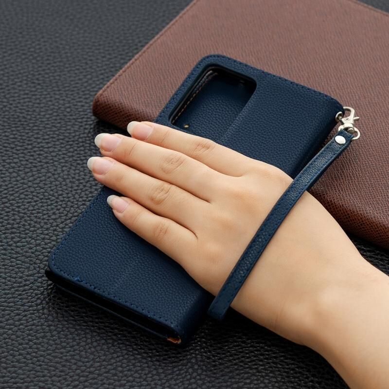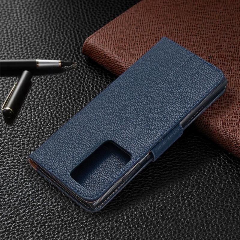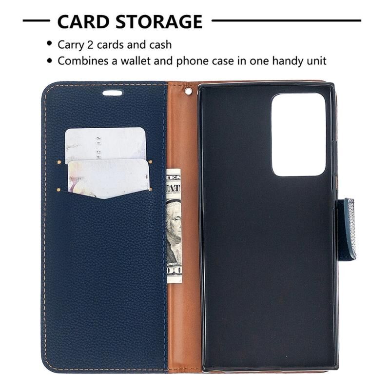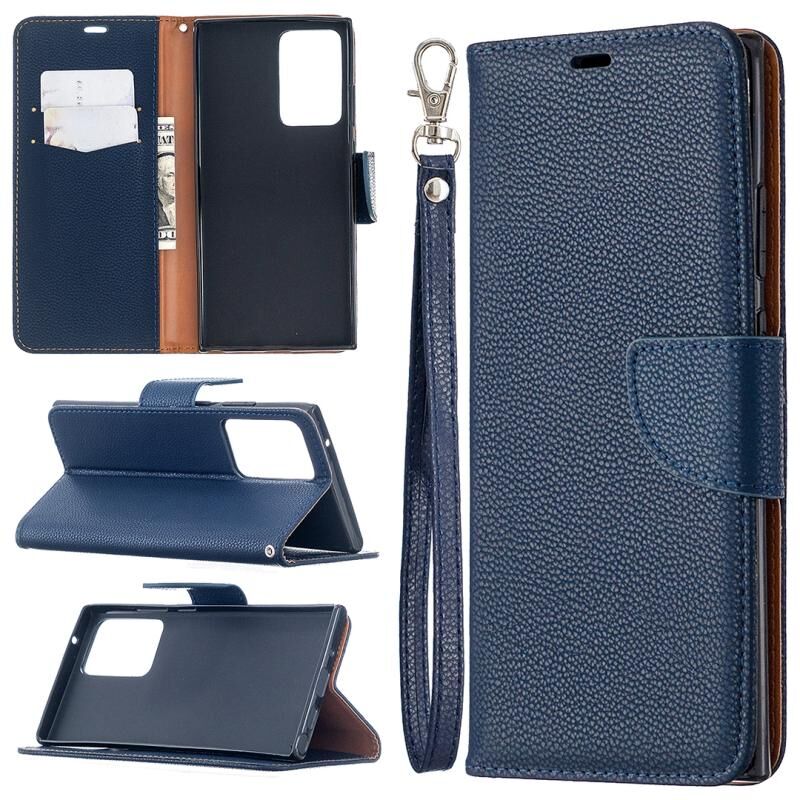 Για Samsung Galaxy Note20 Ultra Litchi Υφή καθαρό χρώμα οριζόντια Flip δερμάτινη θήκη με θήκη & υποδοχές για κάρτες & πορτοφόλι & κορδόνι (μπλε)